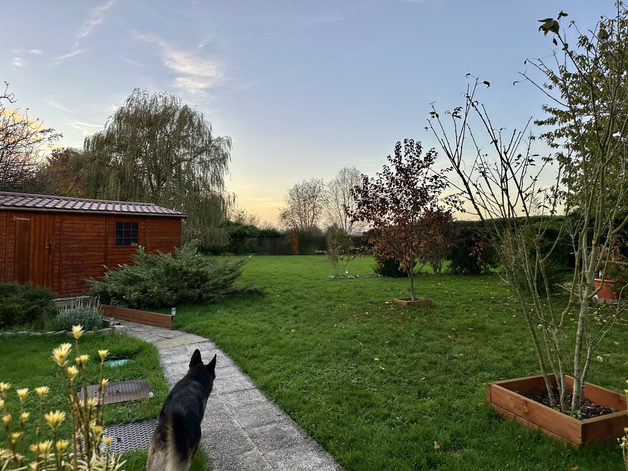 Côté extérieur arrière, vous profiterez d'une grande terrasse avec pergola bioclimatique équipée d'éclairage et de détecteur de pluie, d'un abris de jardin et d'un bel espace gazon joliment arboré. Côté extérieur avant, vous pourrez stationner plusieurs véhicules dans la cour macadamisée, sécurisée par un portail motorisé.