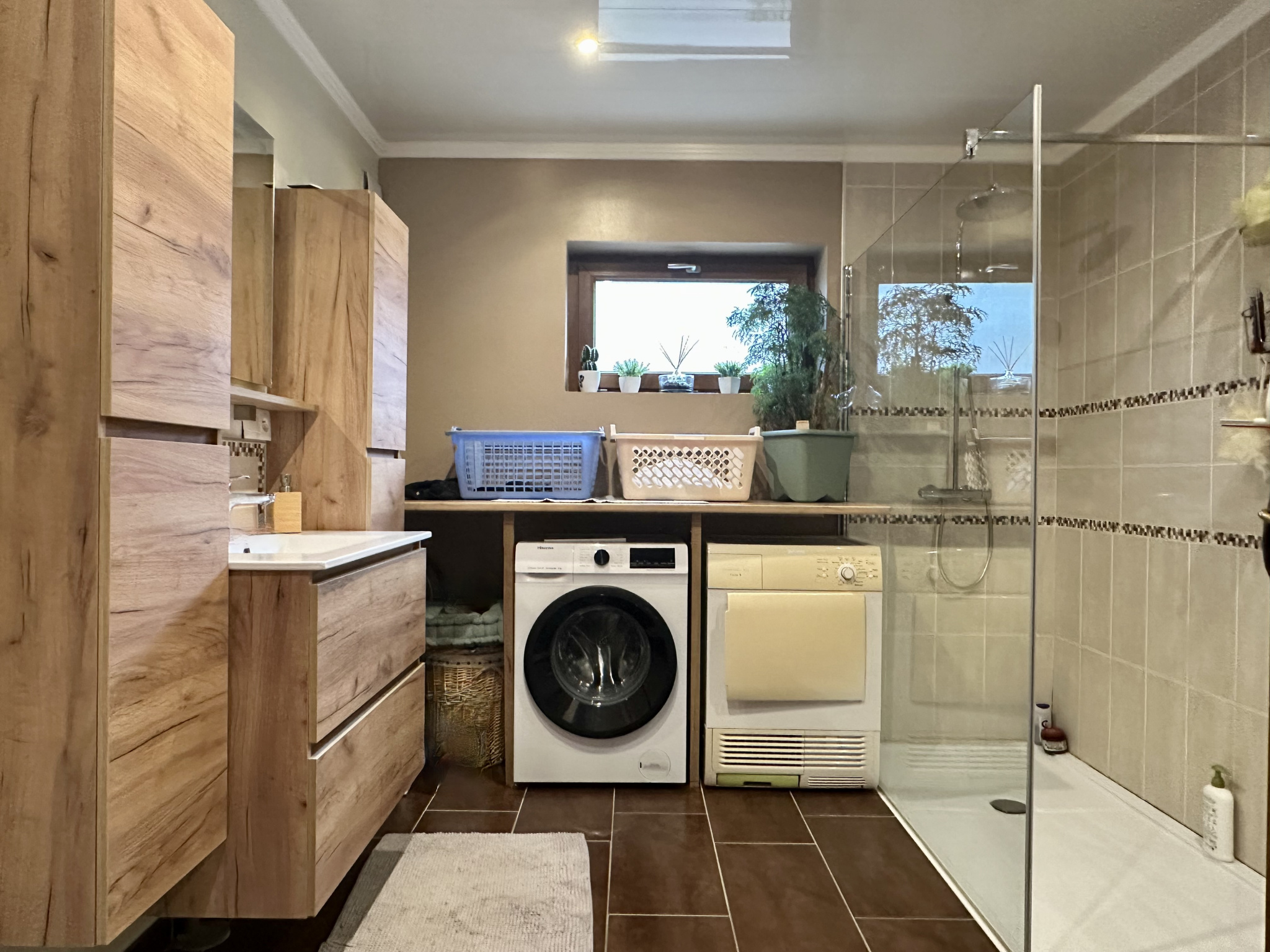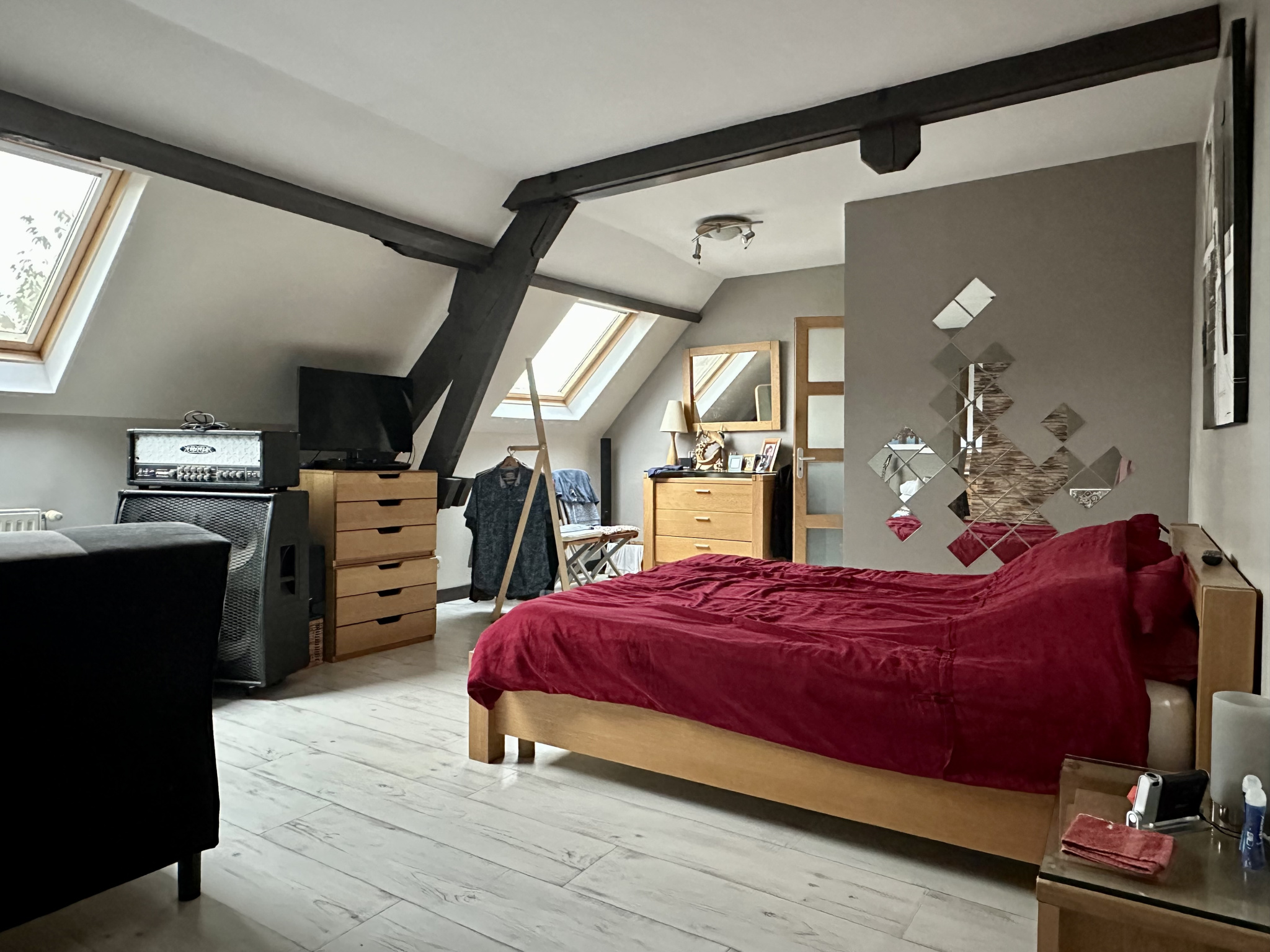 L'espace aménageable dont je vous parlais précédemment pourrais éventuellement être transformé en Airbnb, gîte, logement étudiant, salle de sport, salle de cinéma ou autre. Il développe approximativement une superficie de 45 m2 utiles soit environ 75 m2 au sol. Vous pourriez aussi tout simplement le conserver en espace de stockage et/ou bricolage selon vos besoins et envies. Le potentiel est plutôt très intéressant !!